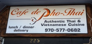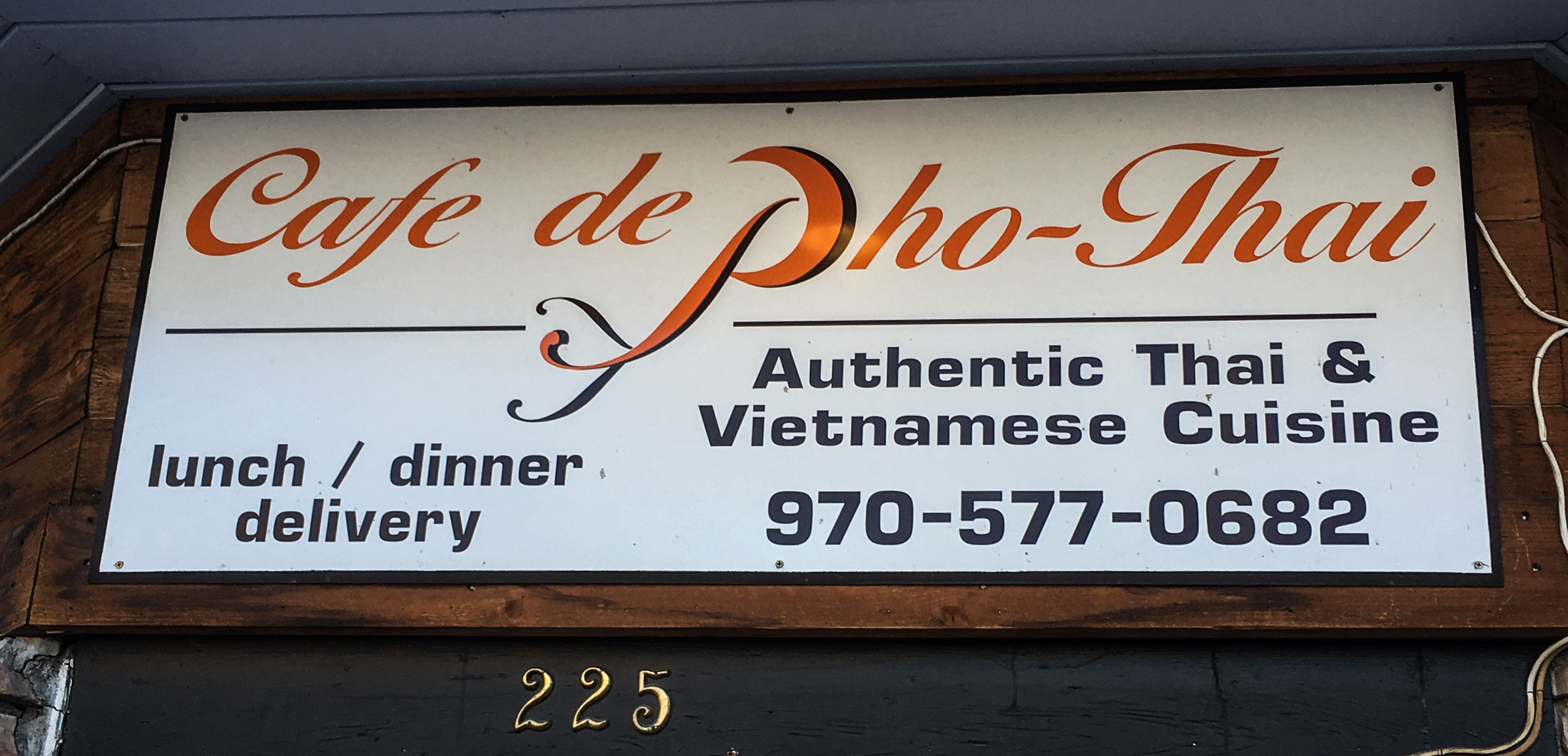 Our first true Great Escape destination was Estes Park. We arrived at Aspen Winds on Fall River Road in the early afternoon. While checking in, the owner recommended at couple of restaurants, the Trailhead which was up the road toward RMNP and served standard American fare. In the other direction, Nicky’s. I thought he said Nicky’s served Greek food. Turns out the owner Nicky is Greek; the restaurant serves the usual steaks, seafood, and burgers. Neither of those choices appealed at that moment, so using Google, I found a Vietnamese and Thai restaurant, Cafe de Pho Thai in downtown Estes Park.