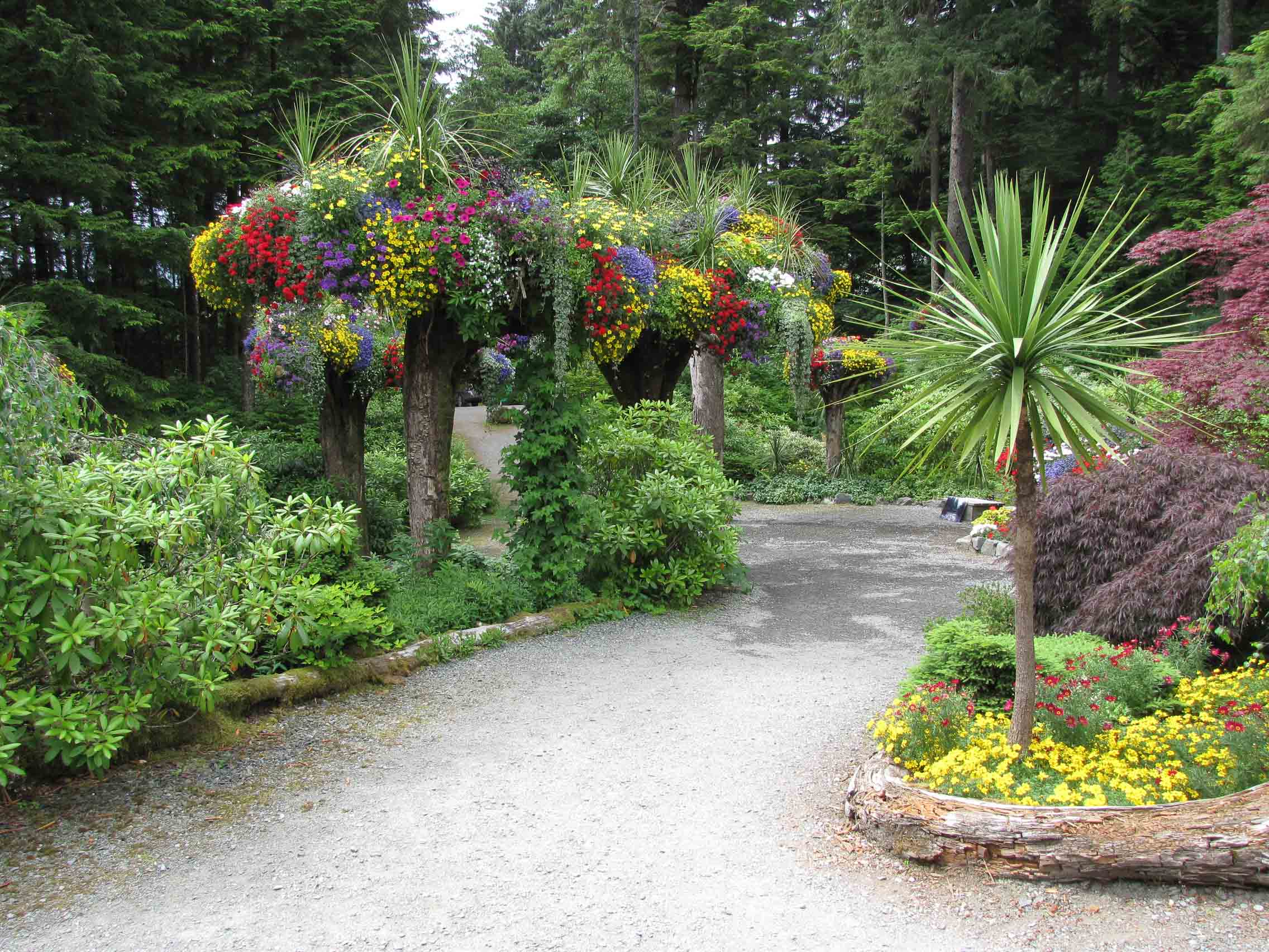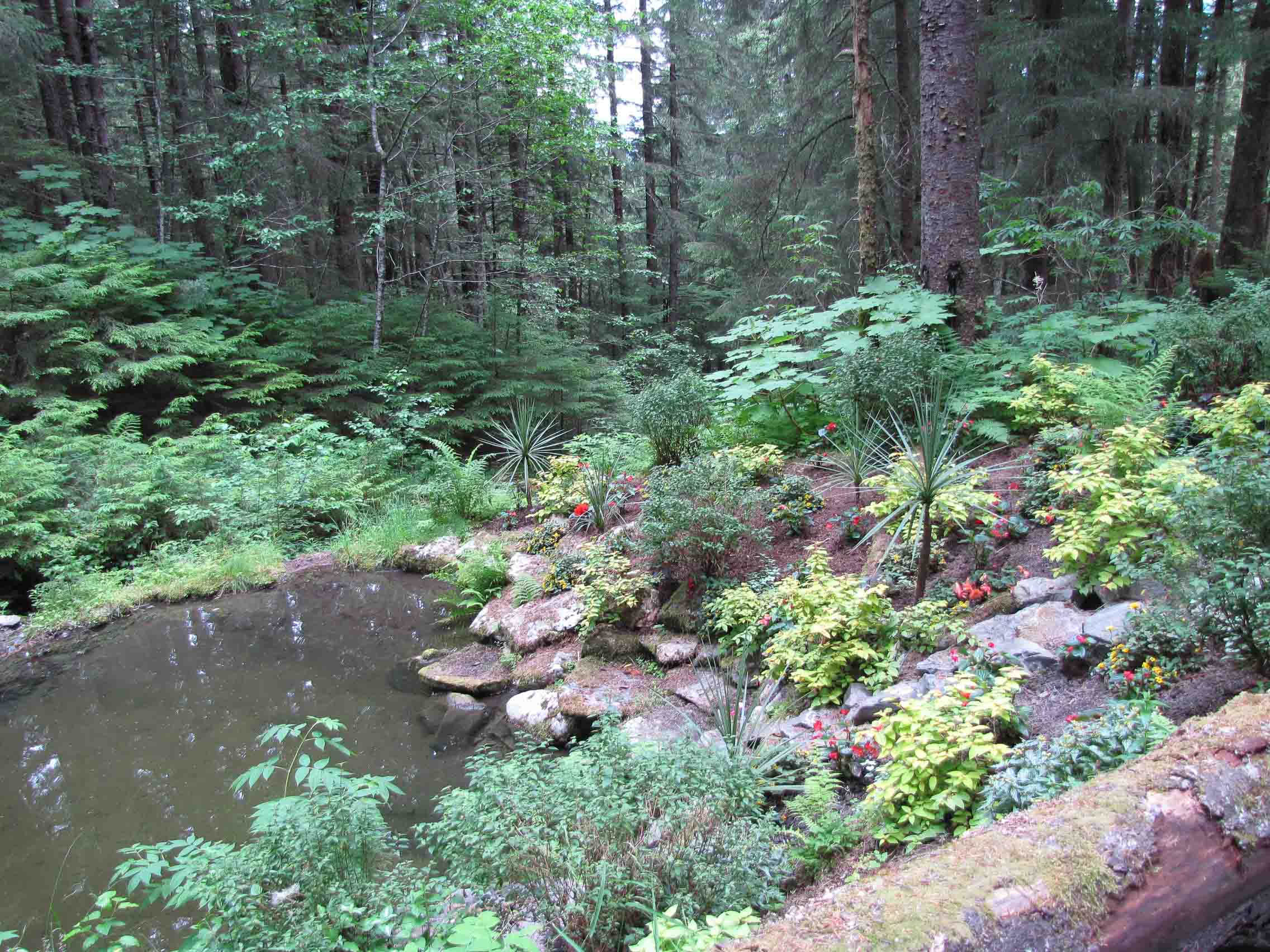 I went to Mendenhall Gardens, then to the Mendenhall Glacier via a land route. In the garden, there are ‘flower towers’, which are fallen trees turned roots up and stuck back in the ground — flowers are planted in the nest of roots and are really very pretty. I think Theo now has some new ideas for our yard…