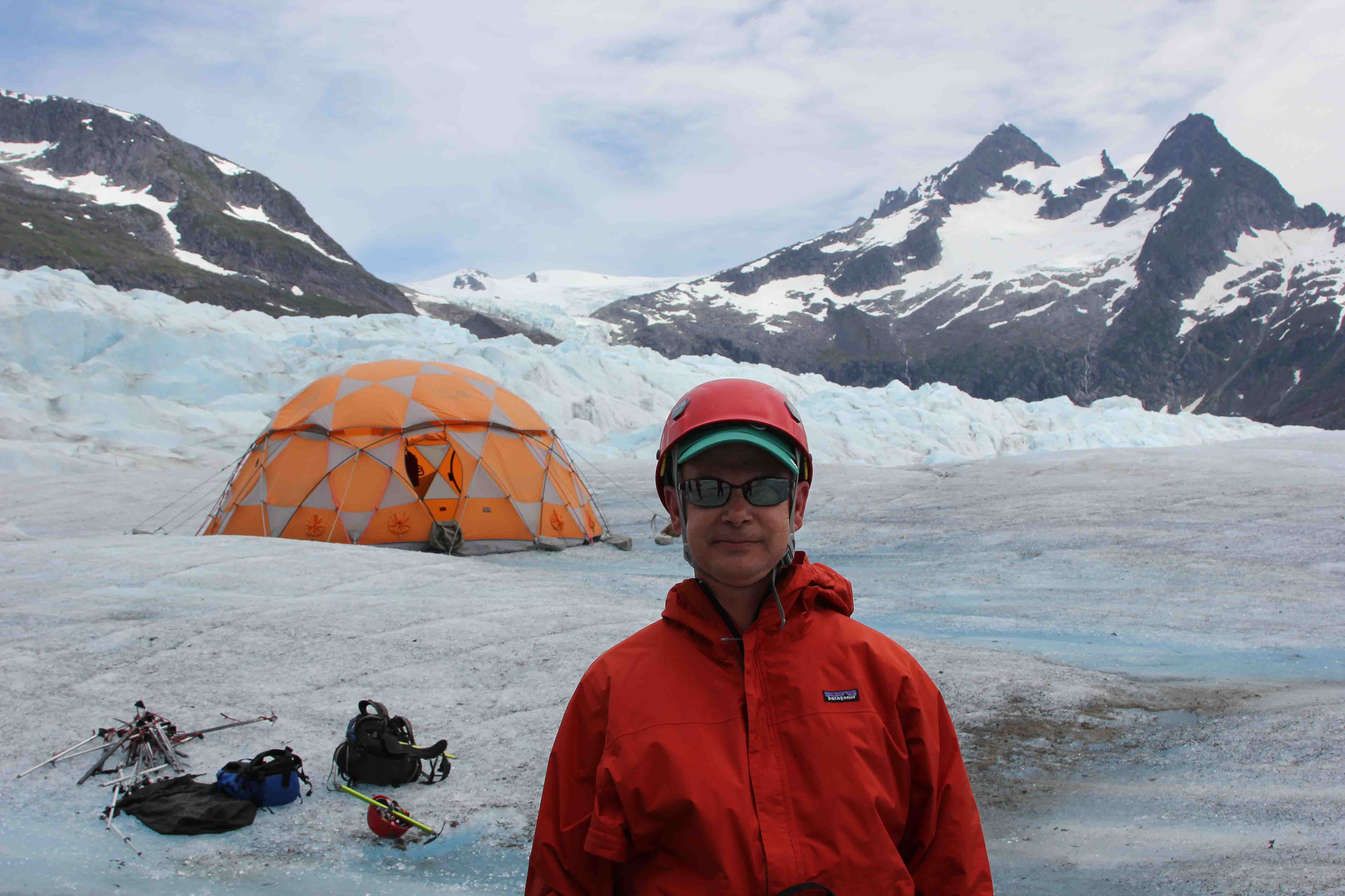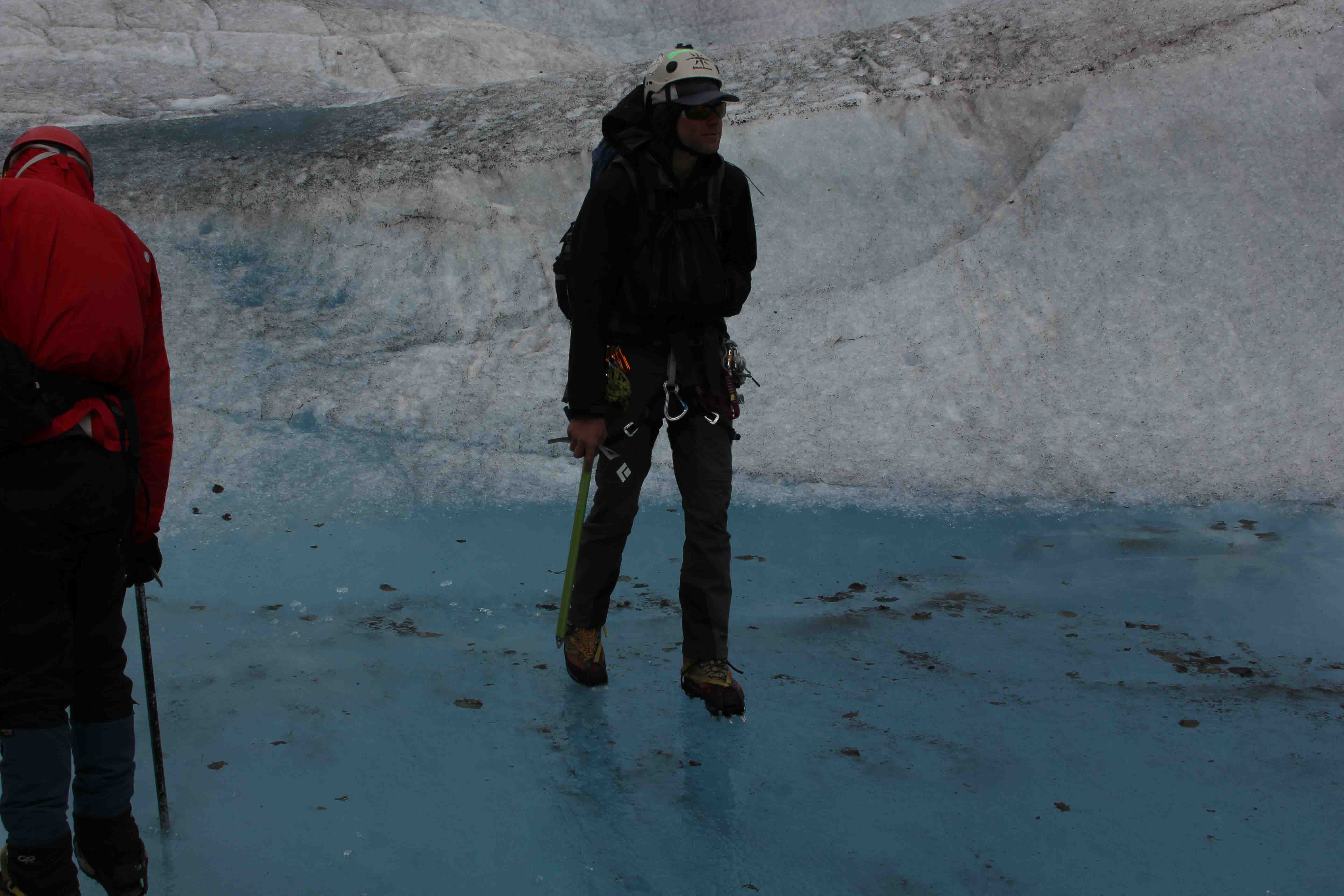 While here, Theo took to the skies for some heli-hiking atop Mendenhall Glacier. Glaciers are essentially a river of ice and they do move. Slowly. The surface is not smooth, but is full of crevices and spikes (called seracs). As the glacier moves along, it picks up debris and grinds away bits of the mountain. Atop this glacier is one of the few places in the world one can see rain forest, glacier, and the ocean all at once.