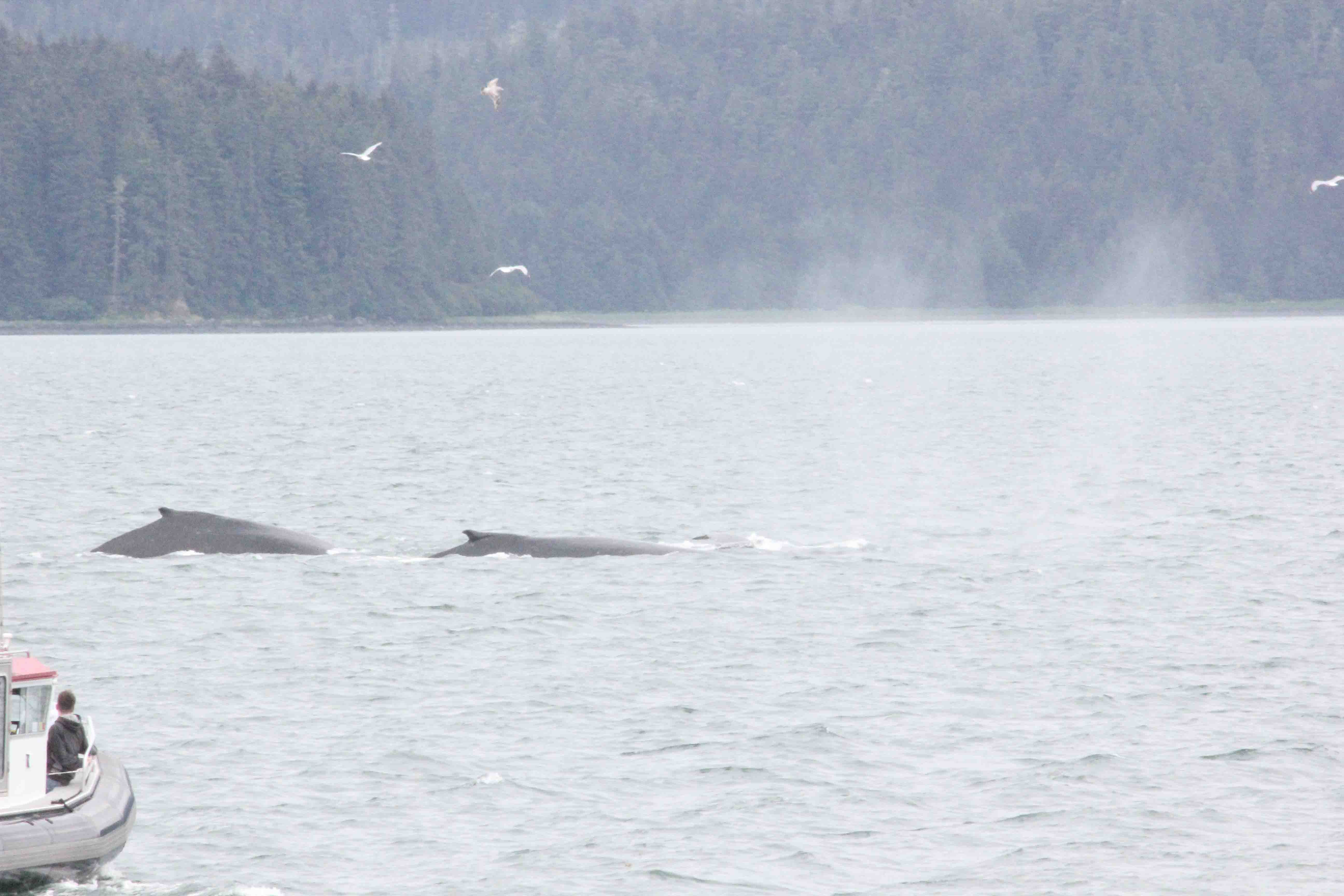 We met back at the dock afterward to take off on a whale watching trip. Oh. My. Goodness. We saw an impressive number of whales — one group of about 12 was working together in what is called ‘bubble net feeding.” A couple dive deep and scare the herring into bunches, then the whales blow bubbles underwater, which forces the herring up. Apparently this makes for a tasty herring snack! Of course, the seagulls seem to understand what is going on and hover above waiting for leftovers. We caught the whales breaching, flipping their tales, and just about every other behavior that makes for great whale watching. Even the tour guides were impressed!