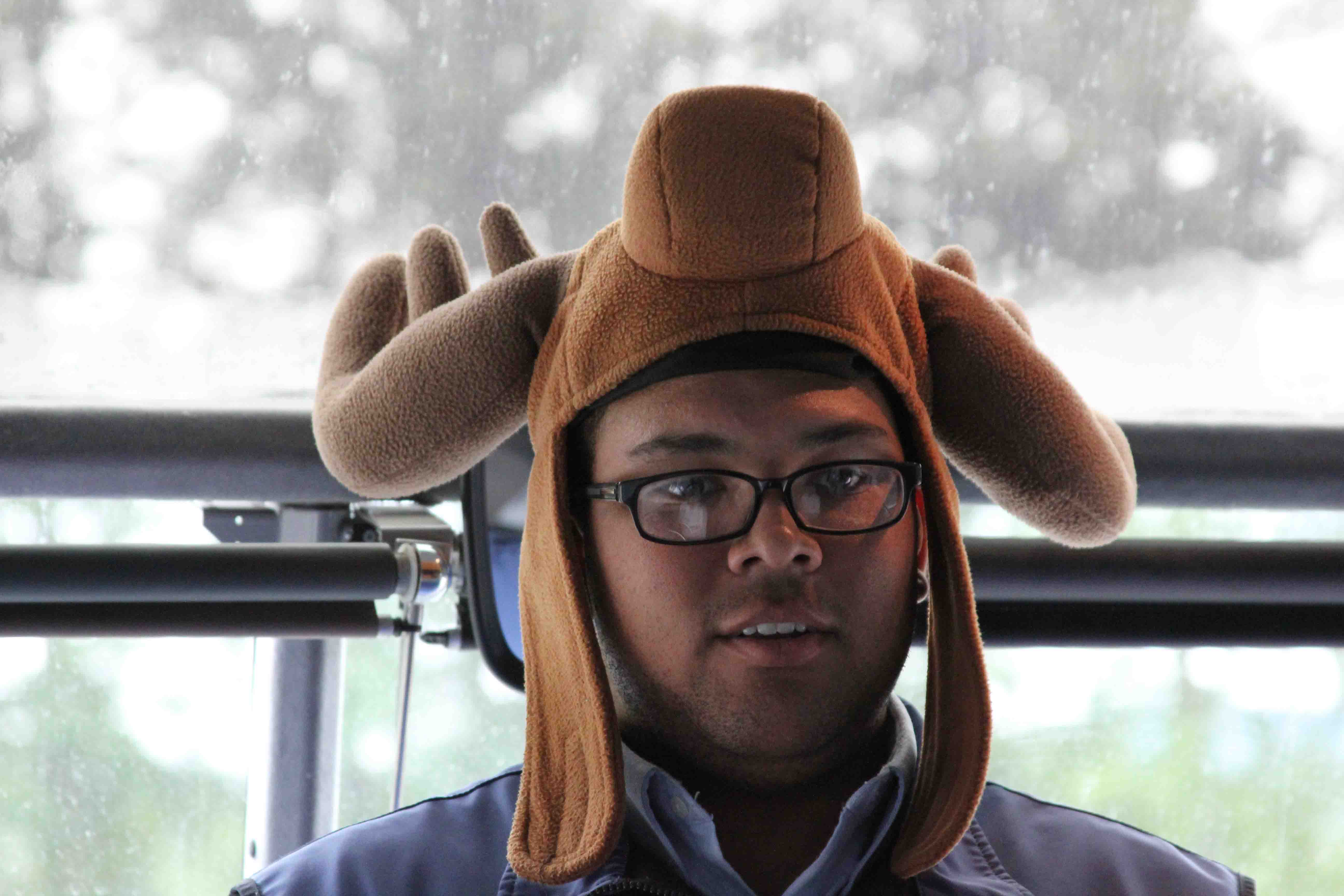 Perhaps not so much moose as our highly-entertaining bus, er, ‘travel coach’ driver, Daniel.  It is quite a long drive to Denali — about 8 hours on the Parks Highway, pretty much the only major highway in the state.  We headed past the port at Seward, through Anchorage, on to Wasilla (yes, THAT Wasilla, although we were assured you could not see Russia from here) where we stopped for lunch – with a great view.