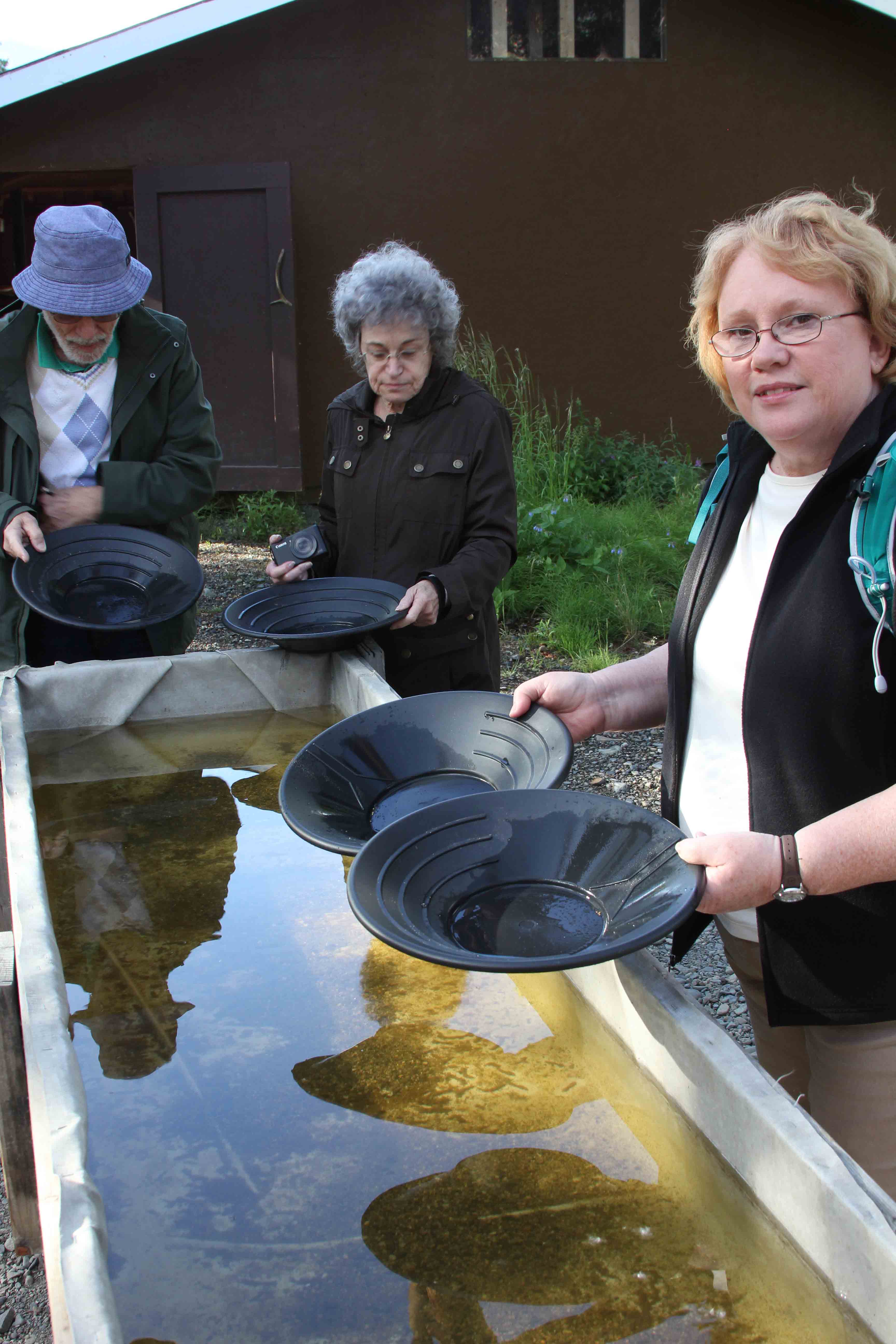 Of course, what trip to Alaska is complete without a little panning for gold?  If you look closely, you will see a tiny fleck of gold at the top of the pan.