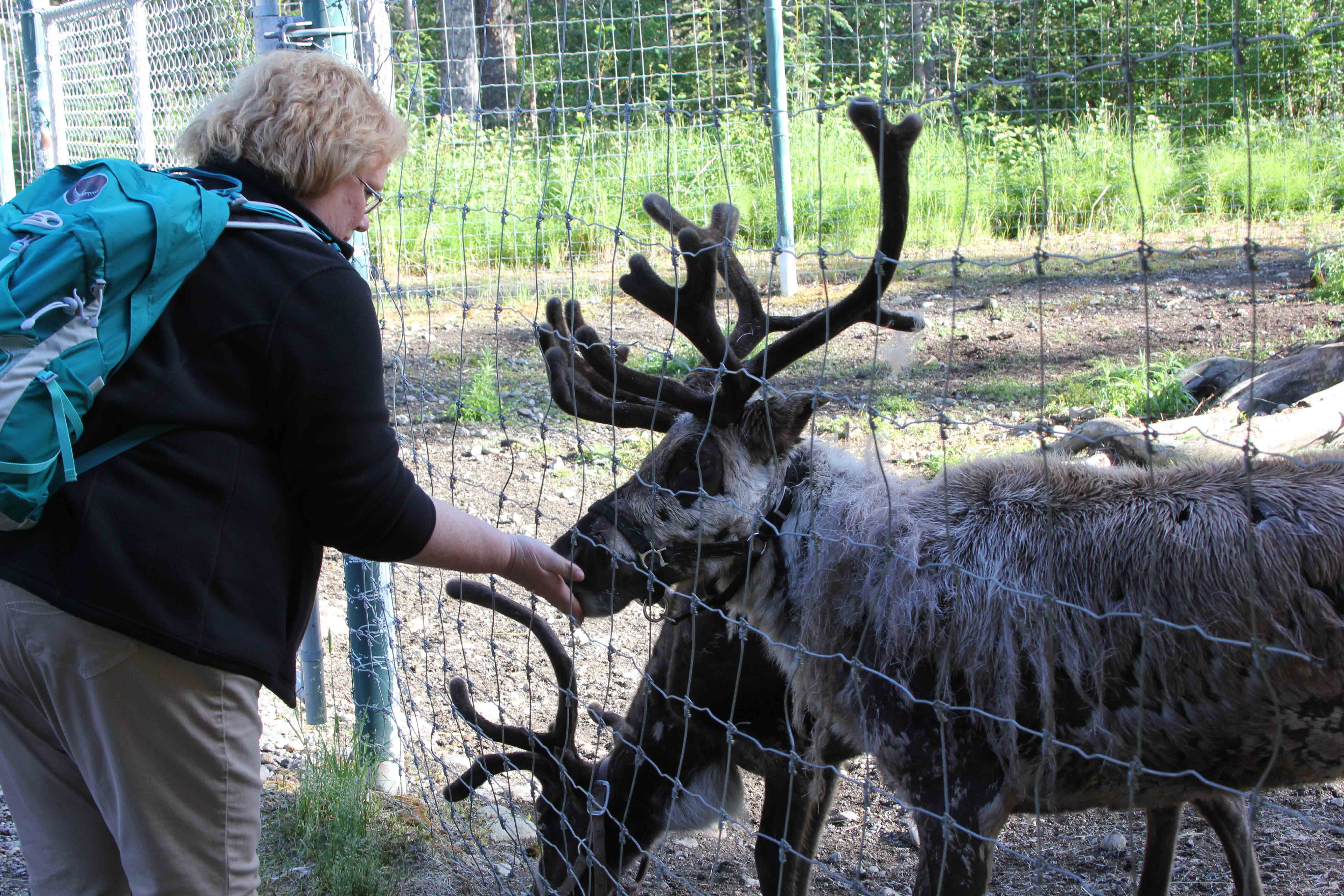 Feeding the reindeer (I guess if they are farm raised, they are reindeer — if they are wild, then they are caribou).  Could be Dasher and Dancer, or was it Prancer and Vixen?  No Rudolph, though.